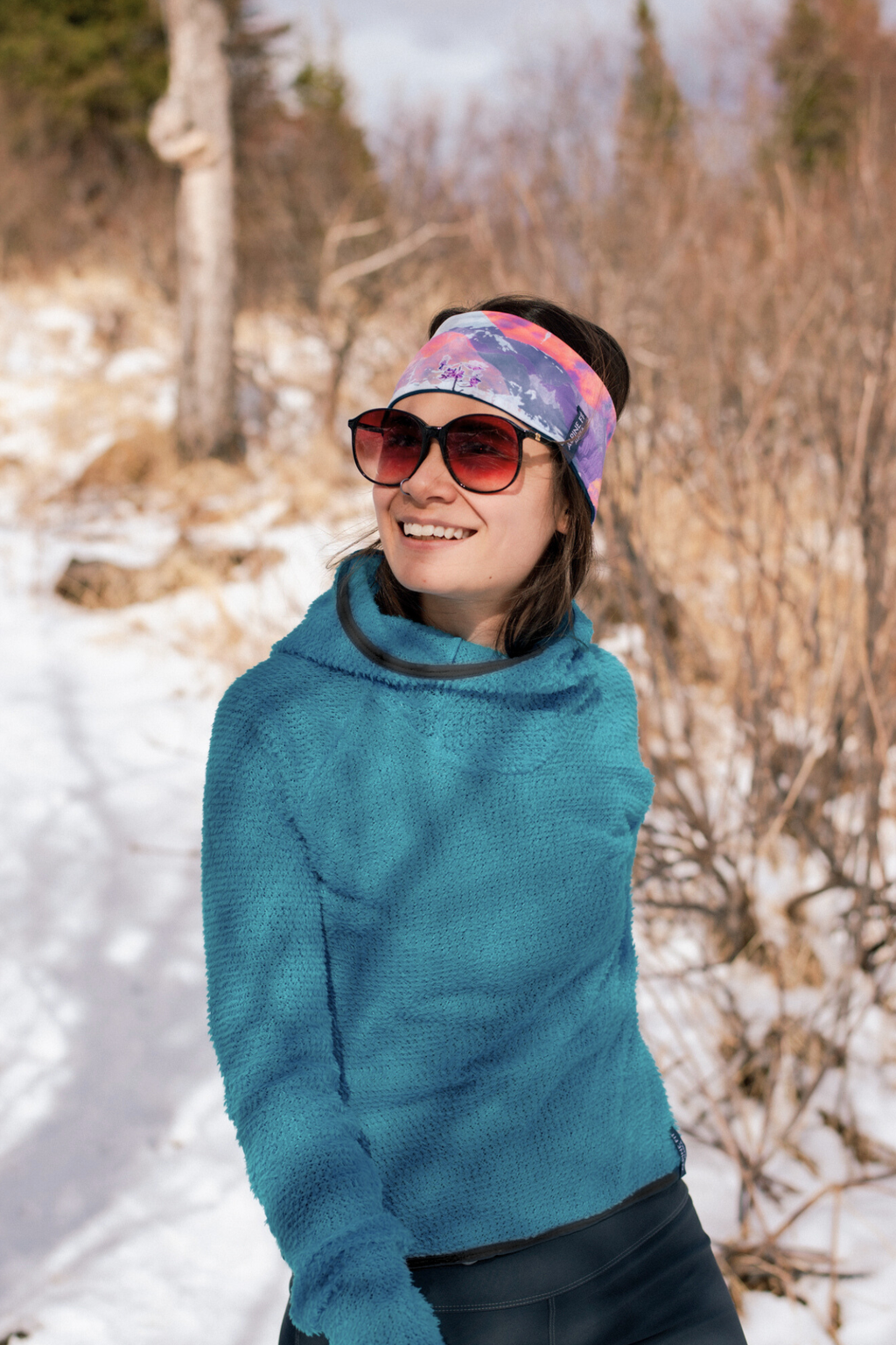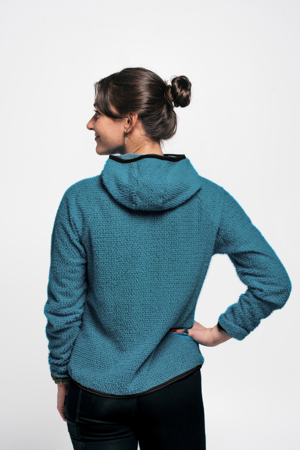 Scuba-style hood with ponytail exit for a trail-ready fit